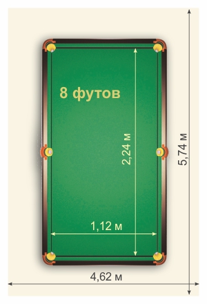 При небольшой площади помещения отличным решением для игры в американский пул и русскую пирамиду будет купить бильярдный стол 8 футов. 8-футовый бильярдный стол имеет игровое поле 2,24 на 1,12 метров. Для бильярдного оборудования таких габаритов требуется помещение не менее 5,74 на 4,62 метров. Именно на такой площади достаточно пространства для комфортной игры. Покупая бильярдный стол 8 футов производства Фабрики «Старт», вы можете быть уверенным, что цена оптимальна, а качество на высоте. Применение новейших технологий вкупе с многолетний оптом позволяют Фабрике «Старт» выпускать высококачественное бильярдное оборудование международного стандарта.