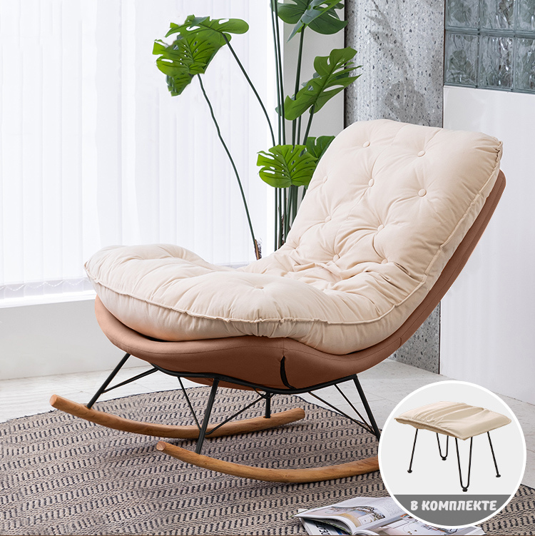 Кресло-качалка "Эйфория-2" обивкой из экологичной ткани привнесет в Ваш дом уют и тепло. Довольно простой на вид, он обладает всем необходимым для полноценного отдыха: креслом с мягким сиденьем и удобной банкеткой для ног.